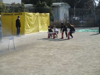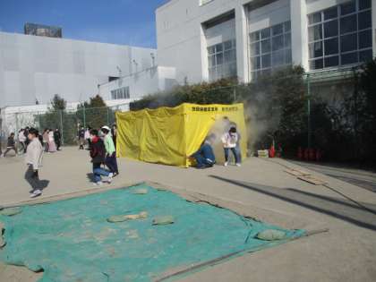 全体集合後、代表児童による初期消火訓練と2年生4年生6年生は煙中体験を行いました。