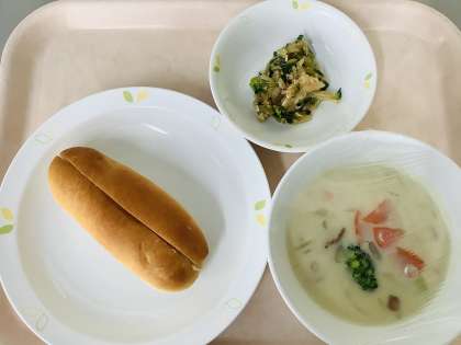 ジャムバターサンド さつまいもシチュー 切り干し大根のサラダ 牛乳