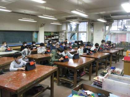 5年2組の授業は図工です。今日は、鑑賞の授業です。