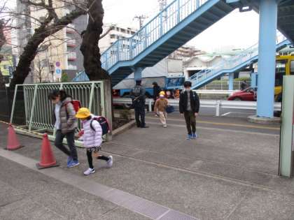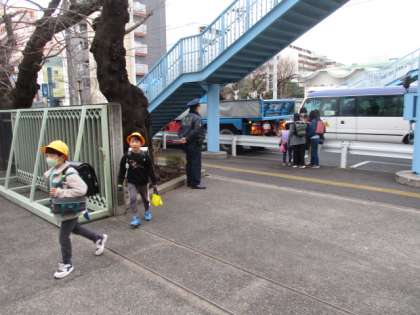 今日も池尻交番のおまわりさんが子どもたちの登校を見守ってくれました。