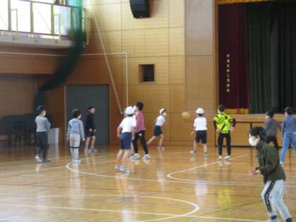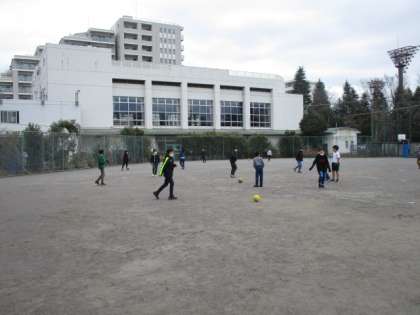 中休みの時間です。校庭の割り当ては5年生6年生です。今日は寒いからか、あまり外に出ている人はいませんでした。出ている人は校庭を広々と使っていました。