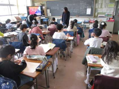 友達のよいところをワークシートに書き込んでいます。友達のことを思い浮かべているのか、子どもたちは静かに考えながら鉛筆を走らせていました。