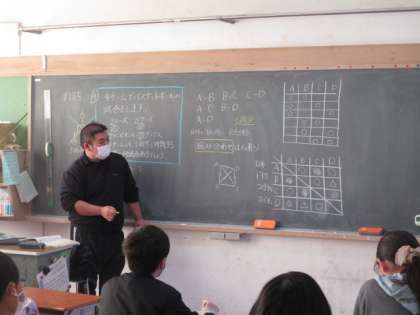 6年生授業は算数です。単元は「並べ方と組み合わせ」です。普段の生活の中のいろいろな場面で使うことがある学習です。しっかりと理解してほしいです。