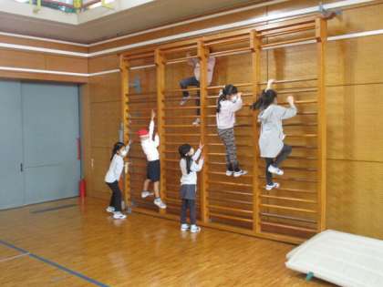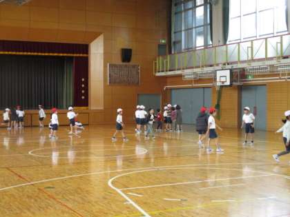 体育館の割り当ては、2年生でした。ボール遊びやおにごっこ、ろくぼくなどで元気に遊んでいました。