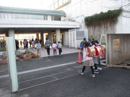 中学生のお姉さんと一緒に登校してくる人もいました。お姉さんが門のところまできて見送ってくれています。とてもすてきな光景です、見ていて温かい気持ちになりました。