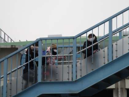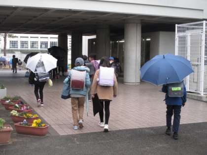 今日もとても寒い朝です。たまに感じる程度、雨が降っています。かさをさす人、さしていない人がいます。