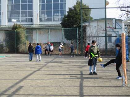 今日の校庭の割り振りは、5年生6年生です。さっきまでの雨のせいか、校庭に出てきた人は少なかったですが、出てきた人は、元気にボール遊びをしていました。