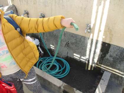 ホースの中の水が凍って、ホースが棒のようになっていることも教えてもらいました。