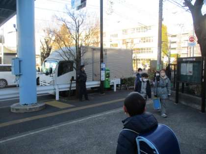 今日も、池尻交番のおまわりさんが、子どもたちを見守ってくれていました。