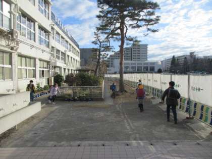 子どもたちが元気に登校してきました。中学生のお姉さんと一緒に登校をする姿や、歩道橋の向こうから手を振ってくれる子どもたちの温かさに、寒さが吹きとびます。