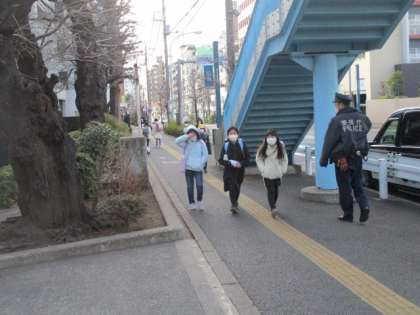 今日も池尻交番のおまわりさんが、子ども達を見守ってくれていました。