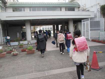 子どもたちは、あいさつをしながら元気に登校してきました。