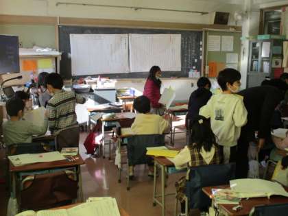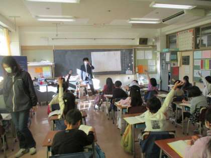 ライオンとしまうまの赤ちゃんの様子の違いについて、読み取る授業です。ワークシートに違いを書き込み、それを友達と交流し確認をし合っていました。子どもたちは、友達の意見にうなずいていました。
