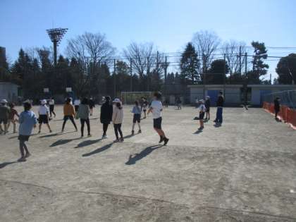 今日の校庭の割り振りは、3年生4年生です。3年2組は消防署の見学に行っているので、3クラスで校庭を使っています。ボール遊びや縄跳びで元気よく遊んでいました。