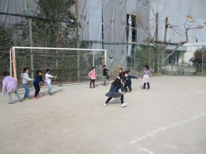 今日の昼休みの校庭の割り振りは、1年生2年生でした。