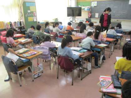 1組は担任の先生が出張で不在だったため、かわりの先生が来て、自習をしていました。とても静かに自習を進めていたので、感心しました。