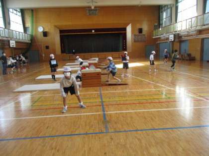 1組の授業は体育です。体育館で跳び箱をやっていました。動きのポイントを意識していろいろな場で練習をしていました。