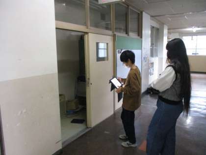 今日の朝は、テレビでの代表委員会の人たちによるSDGs集会です。地球にやさしい活動についていろいろな説明がありました。放送室前の廊下では、話す順番を待つ代表委員の人が緊張した表情で待っていました。
