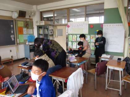 今日は、教育委員会の方々が、子どもたちの様子を見に池尻小学校にいらしてくださいました。子どもたちの様子を見て、「しっかりと、話を聞くことができる子どもたち」「素直で子どもらしい子どもたち」との、お褒めの言葉をくださいました。