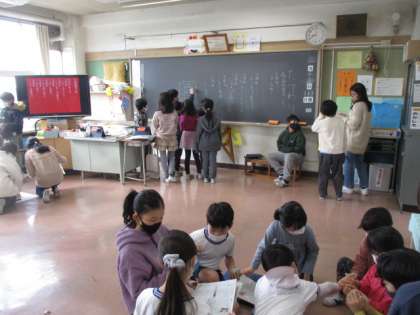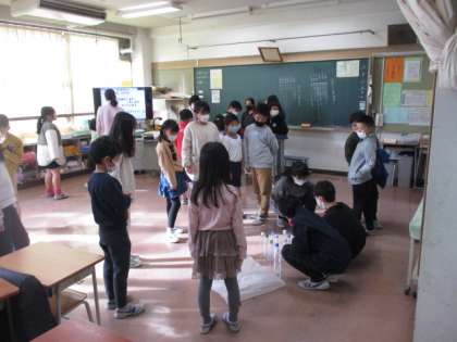 今日の朝の活動はたてわり班活動です。24日にある池尻フェスティバルに向けての準備やPR動画撮影です。先に動画を撮るグループ、先に準備をするグループなど進め方はさまざまです。