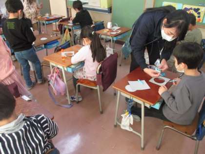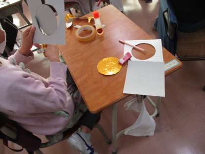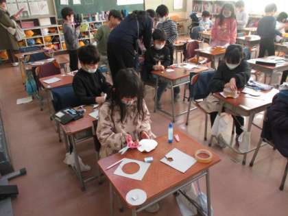 2組の授業は図工です。お世話になった6年生へのメダルづくりです。頑張った自分に向けてもつくります。6年生への気持ちを込めて、しっかりと作っていました。