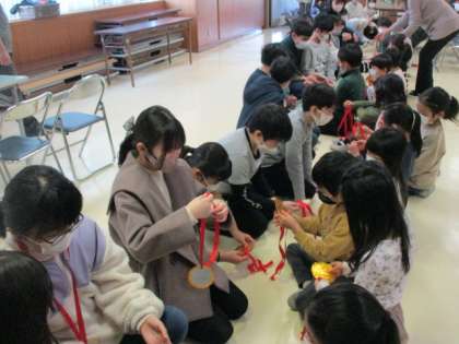 2学期に6年生は1年生から招待され、いろいろな遊びのおもてなしを受けました。そのお礼で、今回は6年生が1年生を招待しました。マジックやジェスチャーゲームなど1年生は大喜びでした。