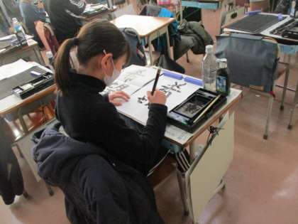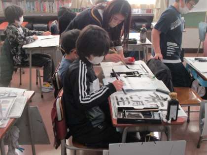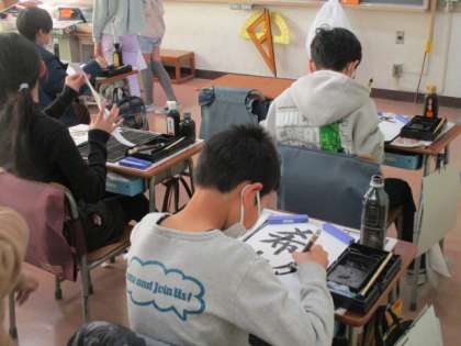 先生と筆の動かし方を確認しながら書いていきました。子どもたちは集中して取り組んでいました。