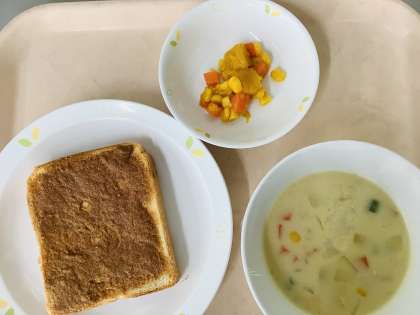 きなこバタートースト パンプキンサラダ コーンクリームサラダ 牛乳