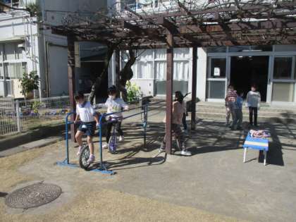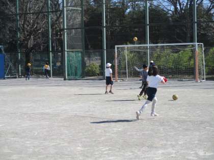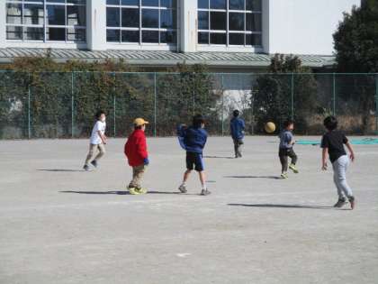 今日の校庭の割り当ては、1年生と2年生です。学級閉鎖で3クラスだけなので、校庭は比較的すいています。子どもたちは、校庭を広々と使って遊んでいました。