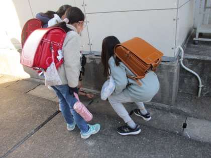子どもたちが、空調の機会の場所にあるつららを見つけて、喜んでいました。