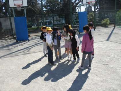 おにごっこをしていて、2年生が突然、「タイム」と言って、走り出しました。その先には、ボール遊びをしていて転んでしまった1年生がいます。おにごっこの最中、転んだ1年生を見つけて駆けつけたのです。本当にやさしい2年生です。とてもすてきな光景を見させてもらいました。今日一日、幸せな気分でいられそうです。