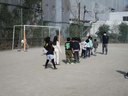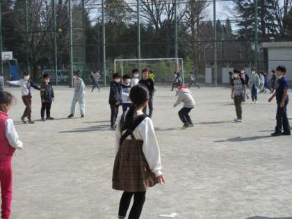 昼休みになりました。今日の校庭の割り当ては、3年生4年生です。