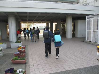 そして、手をつないで校門をくぐったのでした。すてきな兄妹です。