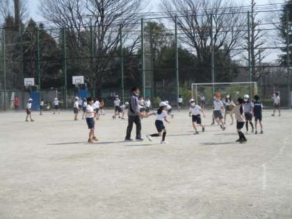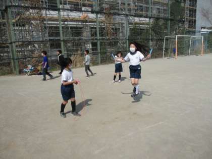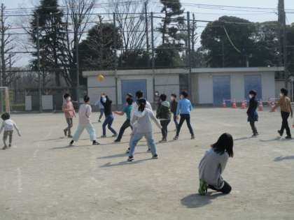 昼休みになりました。今日の校庭の割り当ては3年生4年生です。ボール遊びや短縄で遊んでいます。