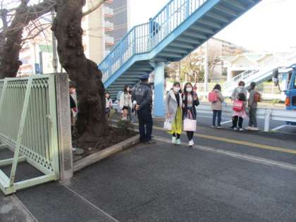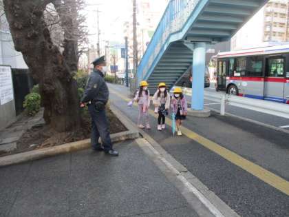 今日も池尻交番のおまわりさんが子どもたちを見守ってくれていました、