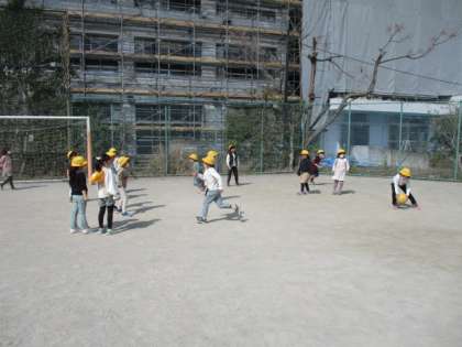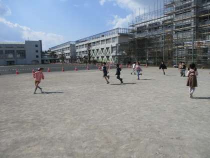 昼休みになりました。今日の校庭の割り当ては、1年生2年生です。