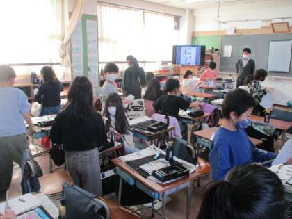 1組では、書き終わった人が、片づけを始めていました。片付けの人も静かに行動していました。
