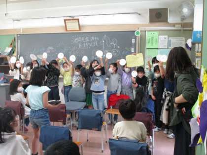 担任の先生を驚かせようと、みんな必死です。子どもたちは、みんなとてもいい顔をしています。分かっていたのか、いなかったのか、担任の先生もとても嬉しそうです。とてもすてきな時間です。
