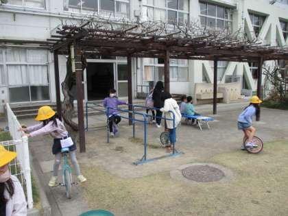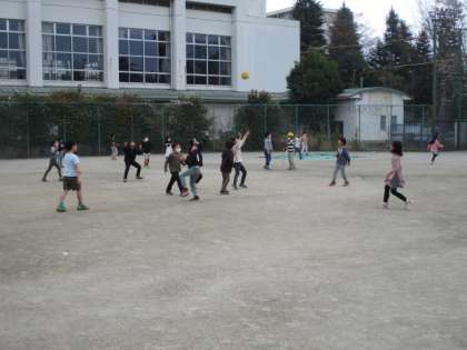 昼休みになりました。子どもたちが校庭に出てきました。思ったよりも寒く感じますが、遊んでいるとすぐに暑くなります。子どもたちは元気に遊んでいました。