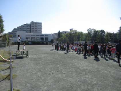 6年生のあいさつから朝会が始まりました。とてもしっかりとした声です。朝会が始まると、子どもたちはとてもよい姿勢で、話を聞いていました。話を聞くのもとても上手な子どもたちです。