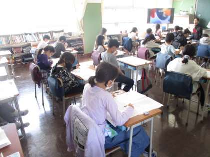 朝の登校の時から、「今日はテストの日だ。」と言っている人がたくさんいました。教室をまわってみると、子どもたちは一生懸命に鉛筆を走らせていました。