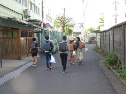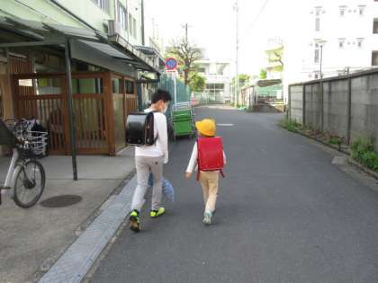 兄弟で一緒に登校する人がたくさんいます。1年生の場合は、お兄ちゃんおねえちゃんがいると、とても心強いですね。
