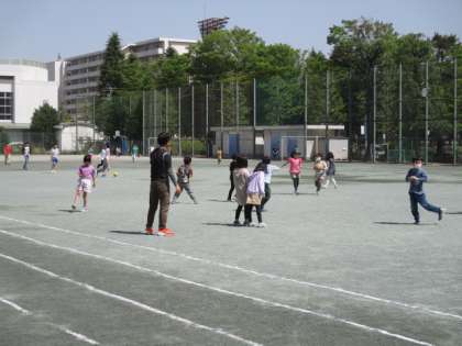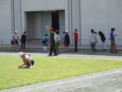 昼休みです。子どもたちがたくさん校庭に出てきました。