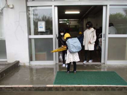 初めての本格的な雨です。1年生にとっては、かさの扱いなどやることが増えてしまいます。