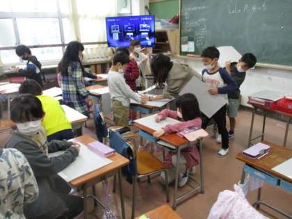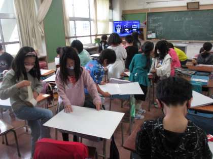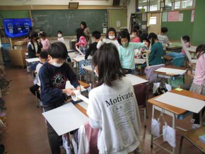 2組では、書写で使うバインダーを作っていました。習字で書いた作品を保存のため、はさむバインダーです。