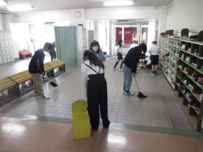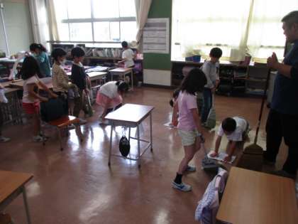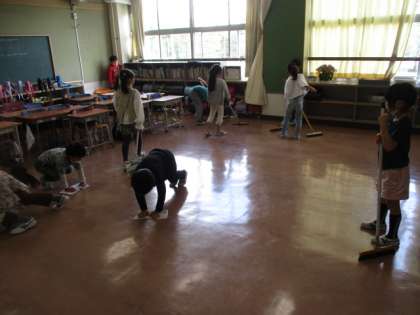 掃除の時間になりました。校舎内をまわってみると、子どもたちが一生懸命に掃除をしています。1日でごみというのは、たくさん出るものなのですね。