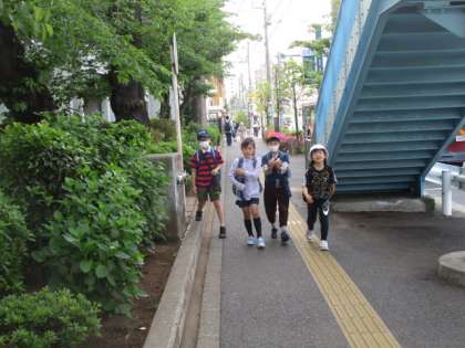 子どもたちが登校してきました。今日は3年生4年生の遠足です。行先はこどもの国です。