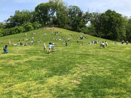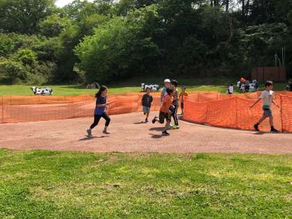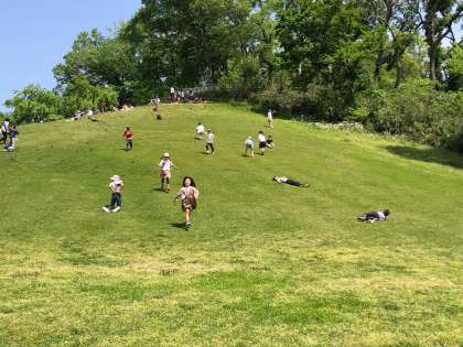 下り坂を思い切り走ったり、転がったりしています。暑さに負けず、みんなとても楽しそうです。
