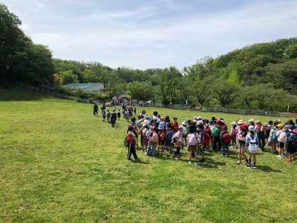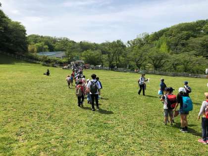 広場でたくさん遊んだあと、最後バスにむかいます。
