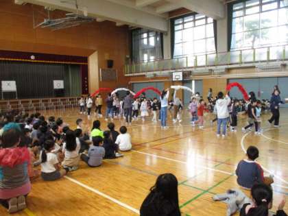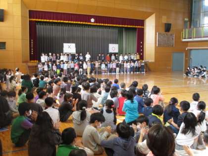 その後は、1年生からのお礼の出し物です。お礼の言葉のあと、「さんぽ」の歌を歌ってくれました。会場の子どもたちから、自然と拍手がうまれていました。